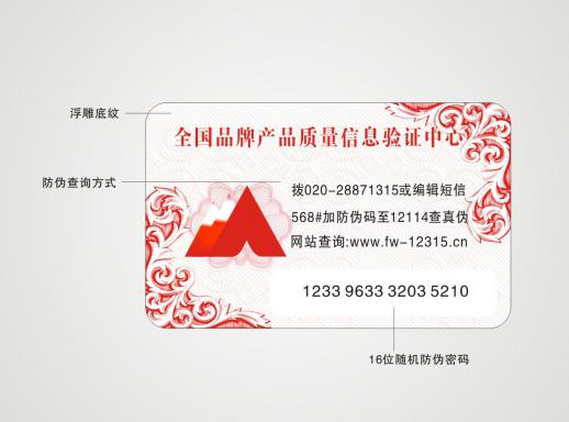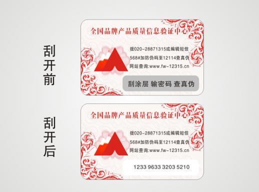 消費(fèi)者在購買已加入數(shù)碼防偽系統(tǒng)的企業(yè)所生產(chǎn)的產(chǎn)品時,在產(chǎn)品的包裝上均可看到數(shù)碼碼防偽標(biāo)識。只要揭開標(biāo)識的表層或刮開標(biāo)識的涂層,就可以看到一組由16位數(shù)字組成的密碼,此密碼是唯一的,只能使用一次。