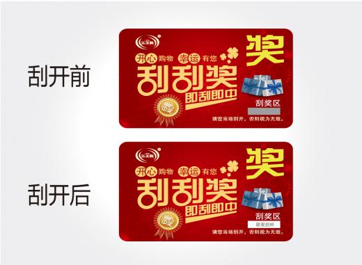 刮獎(jiǎng)卡廣泛應(yīng)用于各類優(yōu)惠有獎(jiǎng)活動(dòng)中,是拓寬產(chǎn)品銷路提高銷量的上佳方法。該類卡核心工藝在于可變數(shù)據(jù)的印刷和刮刮銀區(qū)域的處理,可變數(shù)據(jù)一般以阿拉伯?dāng)?shù)字、英文字母、中文漢字的形式制作;刮刮銀通常以絲印或者貼標(biāo)的方式制作,兩種方式對(duì)數(shù)據(jù)的安全性都有良好的保證。