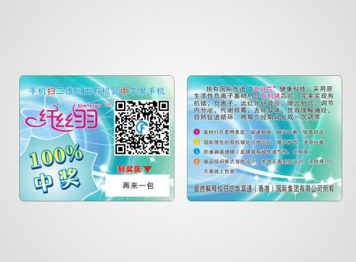 刮獎卡廣泛應(yīng)用于各類優(yōu)惠有獎活動中,是拓寬產(chǎn)品銷路提高銷量的上佳方法。該類卡核心工藝在于可變數(shù)據(jù)的印刷和刮刮銀區(qū)域的處理,可變數(shù)據(jù)一般以阿拉伯?dāng)?shù)字、英文字母、中文漢字的形式制作;刮刮銀通常以絲印或者貼標(biāo)的方式制作,兩種方式對數(shù)據(jù)的安全性都有良好的保證。