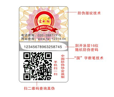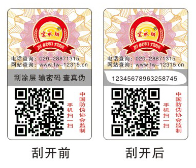 編碼印在涂層的下面,在涂層沒(méi)被刮開(kāi)之前是保密的。(所有標(biāo)簽編碼都被涂層覆蓋,貼到產(chǎn)品上都是完好無(wú)損的,產(chǎn)品賣到消費(fèi)者手中后才可以被刮開(kāi)查詢,在這之前是絕對(duì)保密的)