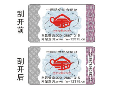 編碼印在涂層的下面,在涂層沒被刮開之前是保密的。(所有標(biāo)簽編碼都被涂層覆蓋,貼到產(chǎn)品上都是完好無損的,產(chǎn)品賣到消費者手中后才可以被刮開查詢,在這之前是絕對保密的)