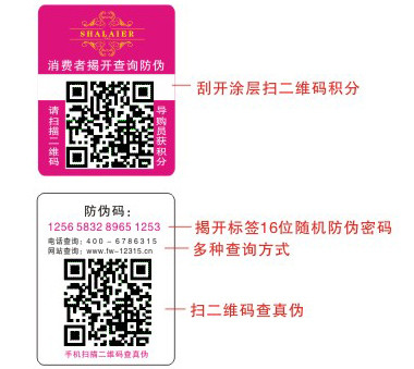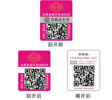 編碼印在涂層的下面,在涂層沒被刮開之前是保密的。(所有標(biāo)簽編碼都被涂層覆蓋,貼到產(chǎn)品上都是完好無損的,產(chǎn)品賣到消費(fèi)者手中后才可以被刮開查詢,在這之前是絕對(duì)保密的)