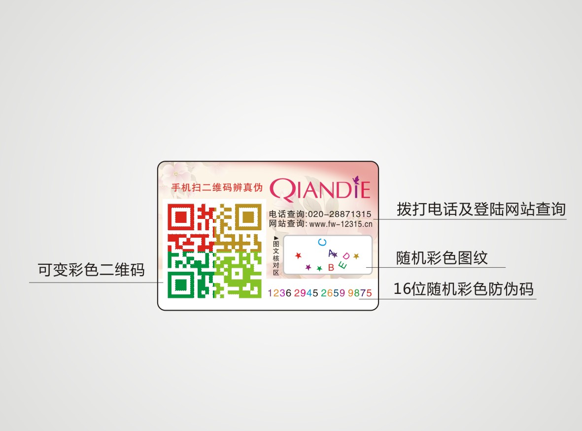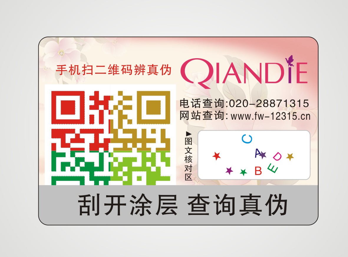 彩色二維碼防偽通過旭發(fā)公司的核心防偽技術信息化編碼/解碼。為每件產品生成唯一的防偽碼和二維