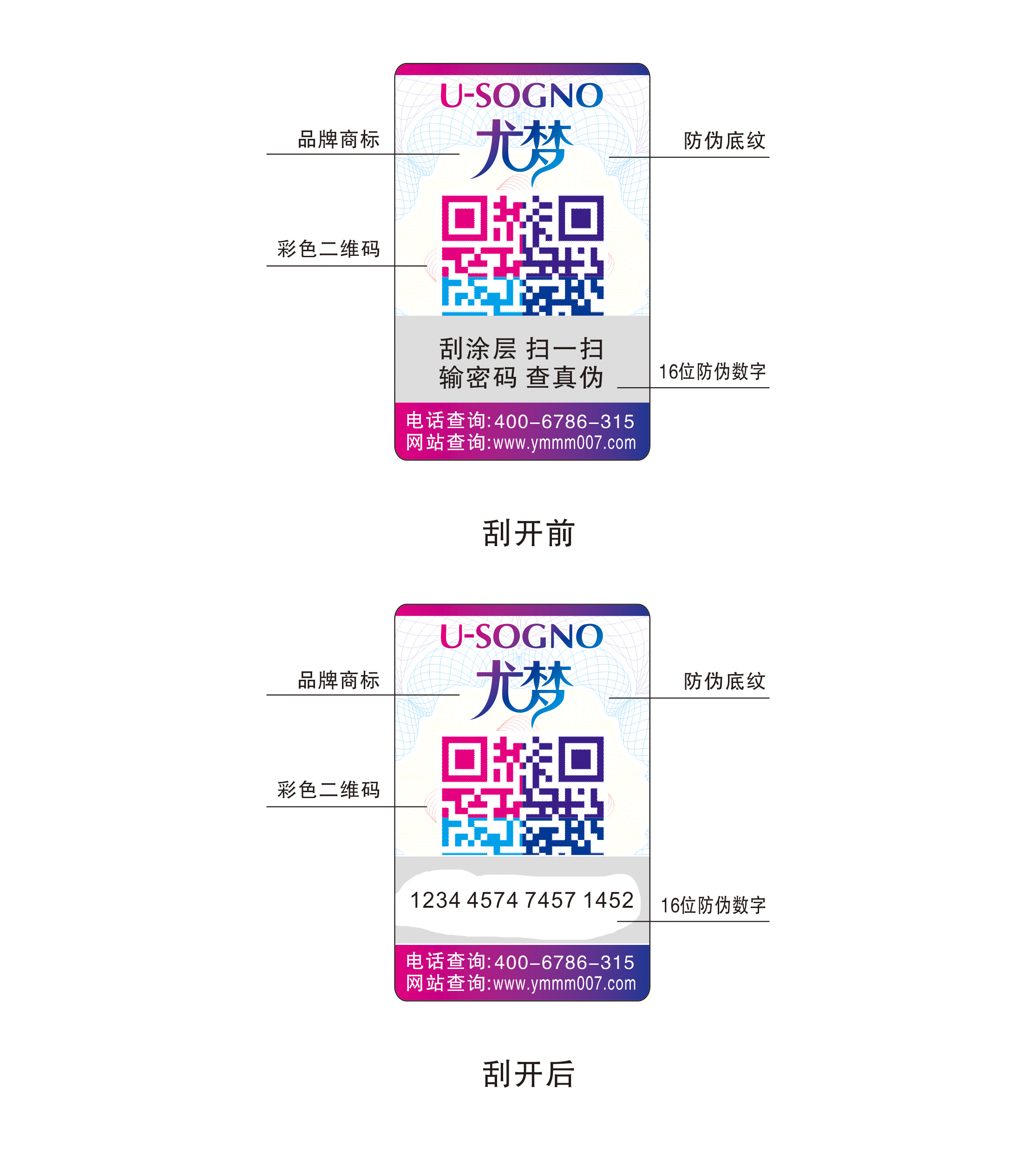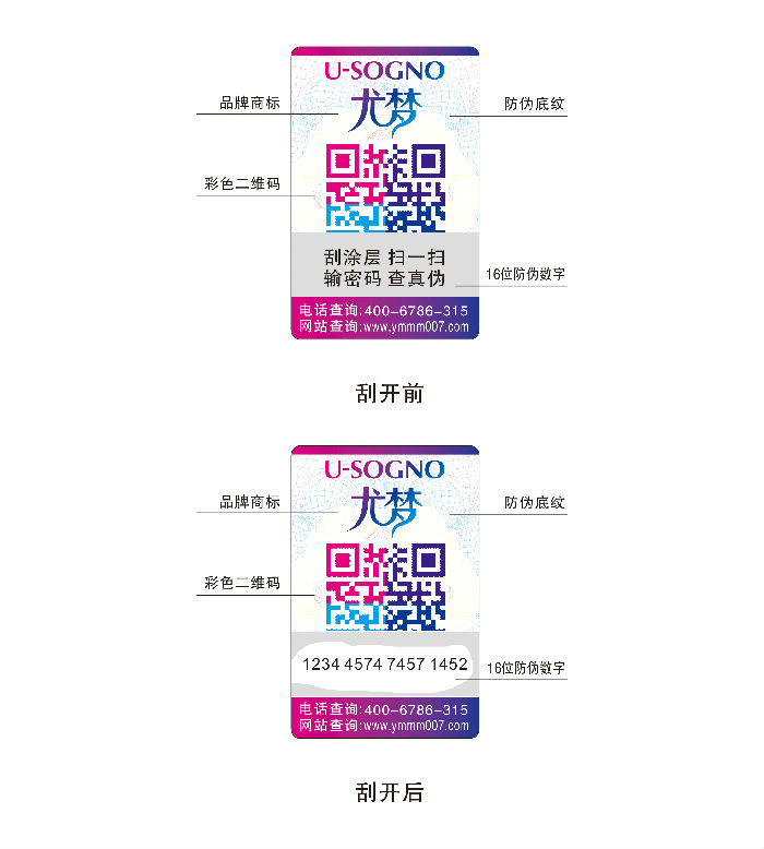 彩色二維碼防偽通過旭發(fā)公司的核心防偽技術(shù)信息化編碼/解碼。為每件產(chǎn)品生成唯一的防偽碼和二維碼,以及具有的顏色(紅、橙、黃、綠、青、蘭、紫、黑等10色),可根據(jù)需求設(shè)置每一位防偽碼為不同顏色,對應(yīng)的每一個二維碼為不同顏色。